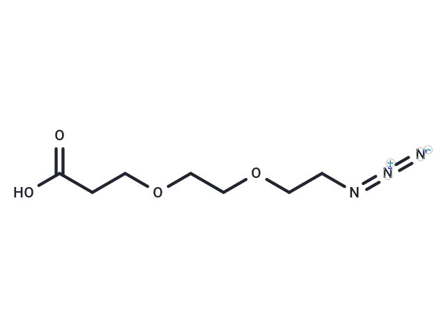 – Azido-PEG2-C2-acid is a PEG-based linker for PROTACs that joins two essential ligands, facilitating PROTAC molecule formation and enabling selective protein degradation via the ubiquitin-proteasome system within cells.