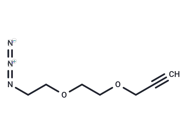 – Azido-PEG2-propargyl, a PEG-based linker for PROTACs, joins two essential ligands crucial for forming PROTAC molecules, enabling selective protein degradation by leveraging the ubiquitin-proteasome system within cells.