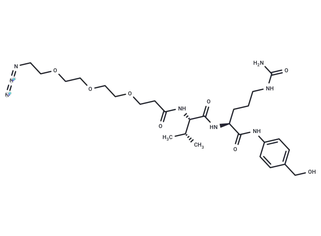 – CC(C)[C@H](NC(=O)CCOCCOCCOCCN=[N+]=[N-])C(=O)N[C@@H](CCCNC(N)=O)C(=O)Nc1ccc(CO)cc1 |@@:1|