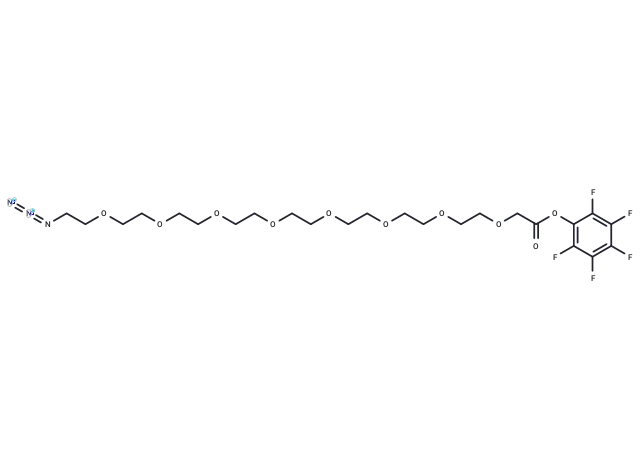 – Azido-PEG8-CH2COO-PFP is a PEG-based linker for PROTACs that joins two essential ligands, facilitating the formation of PROTAC molecules and enabling selective protein degradation by leveraging the ubiquitin-proteasome system within cells.