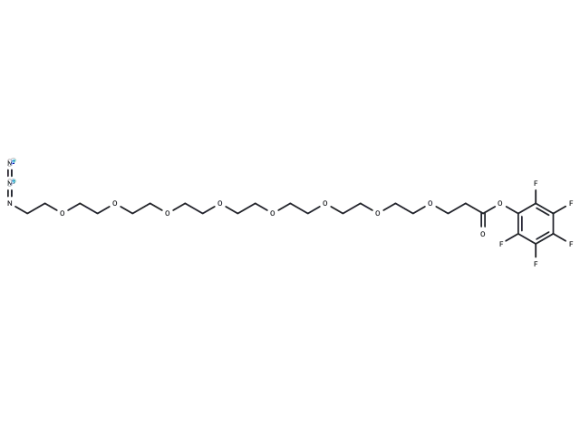 – Azido-PEG8-PFP ester is a PEG-based linker used in PROTACs to connect two essential ligands, facilitating the formation of PROTAC molecules. It enables selective protein degradation by leveraging the ubiquitin-proteasome system within cells.