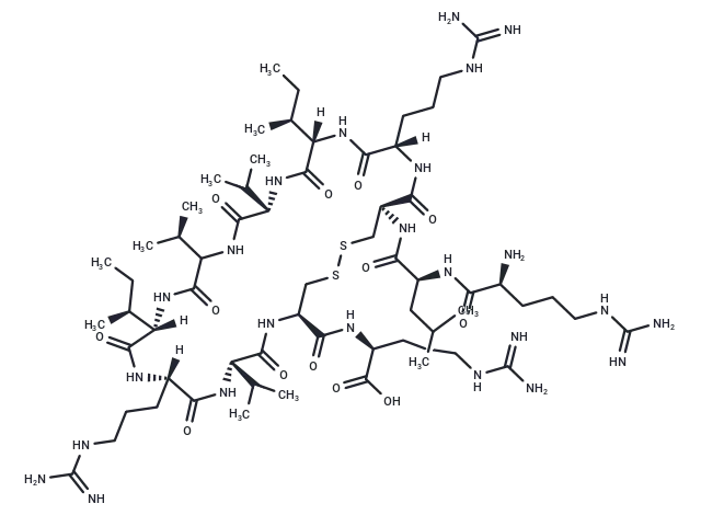 – [H][C@@]1(CCCNC(N)=N)NC(=O)[C@@]([H])(NC(=O)C(NC(=O)[C@@H](NC(=O)[C@@]([H])(NC(=O)[C@]([H])(CCCNC(N)=N)NC(=O)[C@H](CSSC[C@H](NC(=O)[C@@H](NC1=O)C(C)C)C(=O)N[C@@H](CCCNC(N)=N)C(O)=O)NC(=O)[C@H](CC(C)C)NC(=O)[C@@H](N)CCCNC(N)=N)[C@@H](C)CC)C(C)C)C(C)C)[C@@H](C)CC |@@:99|