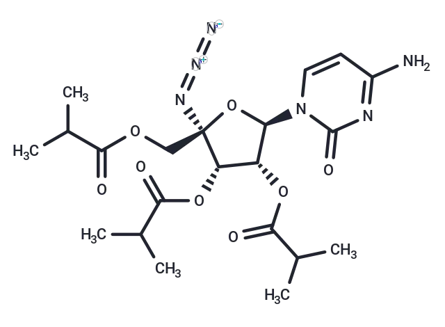 – CC(C)C(=O)OC[C@]1(O[C@H]([C@H](OC(=O)C(C)C)[C@@H]1OC(=O)C(C)C)n1ccc(N)nc1=O)N=[N+]=[N-]