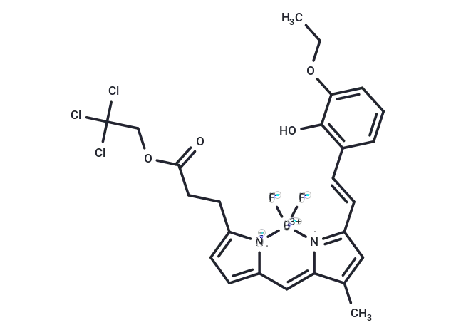 – C(=C/C1=C(O)C(OCC)=CC=C1)C2=[N]3C(=CC=4[N-]([B+3]3([F-])[F-])C(CCC(OCC(Cl)(Cl)Cl)=O)=CC4)C(C)=C2