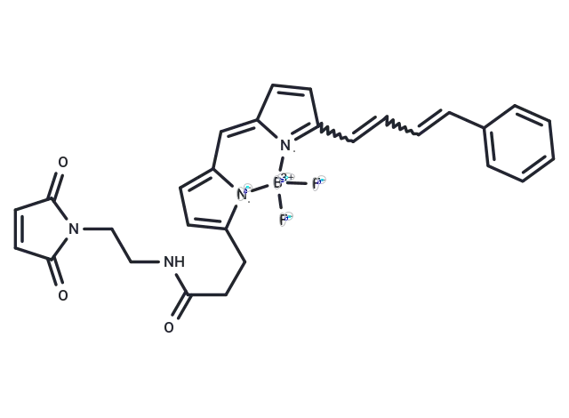 – BDP 581/591 maleimide, a linker of the BDP 581/591 dye, has a long fluorescence lifetime and is used for fluorescence polarization assays. The maleimide group reacts with thiol groups to form thioester bonds between pH 6.5 and 7.5, enabling the labeling of sulfhydryl groups of proteins and peptides.