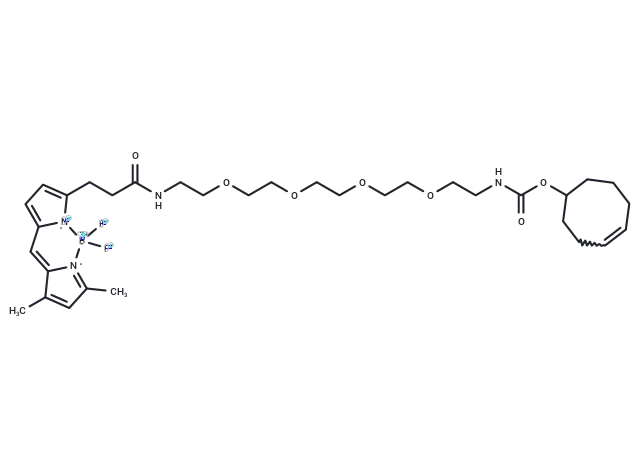 – BDP FL-PEG4-TCO is a PEG-based linker for PROTACs that joins two essential ligands, facilitating the formation of PROTAC molecules and enabling selective protein degradation via the ubiquitin-proteasome system within cells.