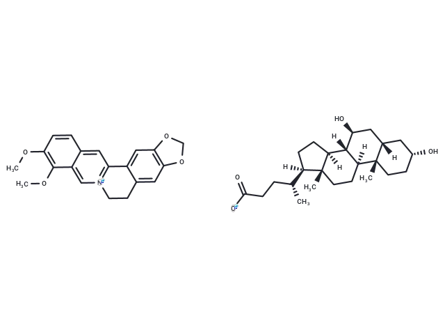 – Berberine ursodeoxycholate (HTD1801) is an orally effective hypolipidemic agent, an ionic salt of Berberine and Ursodeoxycholic acid.Berberine ursodeoxycholate has a wide range of metabolic activity and significantly reduces liver fat content. Berberine ursodeoxycholate has been used in studies of hyperlipidemia, non-alcoholic steatohepatitis (NASH) and diabetes.