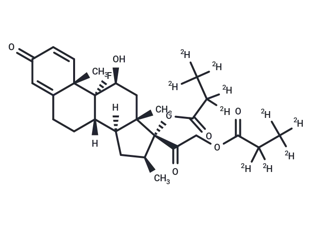 – Betamethasone-d10 Dipropionate is a deuterated compound of Betamethasone Dipropionate. Betamethasone Dipropionate has a CAS number of 5593-20-4. Betamethasone Dipropionate is the 17, 21-dipropionate ester of betamethasone, a synthetic glucocorticoid with metabolic, immunosuppressive and anti-inflammatory actions. Betamethasone dipropionate binds to specific intracellular glucocorticoid receptors and subsequently binds to DNA to modify gene expression. The synthesis of certain anti-inflammatory proteins is induced while the synthesis of certain inflammatory mediators is inhibited. As a result, there is an overall reduction in chronic inflammation and autoimmune reactions.