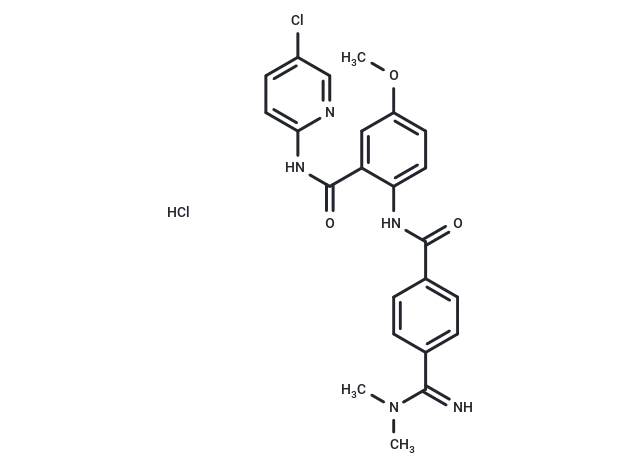 – Betrixaban hydrochloride(330942-05-7(free base)) (PRT054021 hydrochloride) is a potent, selective, and orally efficacious factor Xa (fXa) inhibitor (IC50: 1.5 nM).