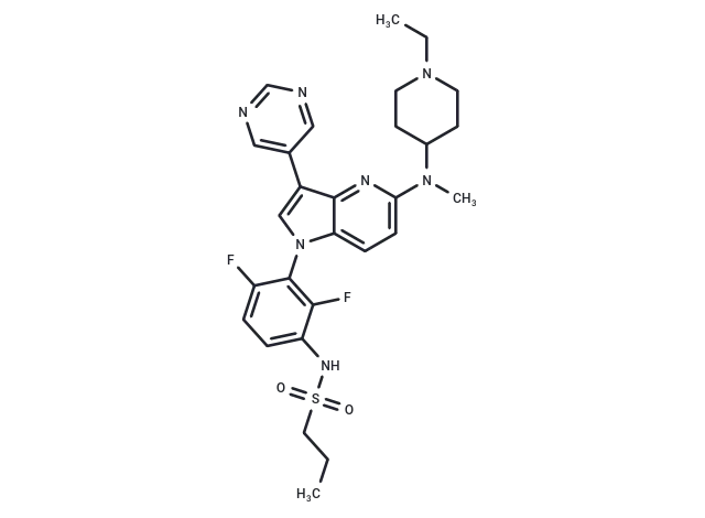 – CCCS(=O)(=O)Nc1ccc(F)c(c1F)-n1cc(-c2cncnc2)c2nc(ccc12)N(C)C1CCN(CC)CC1