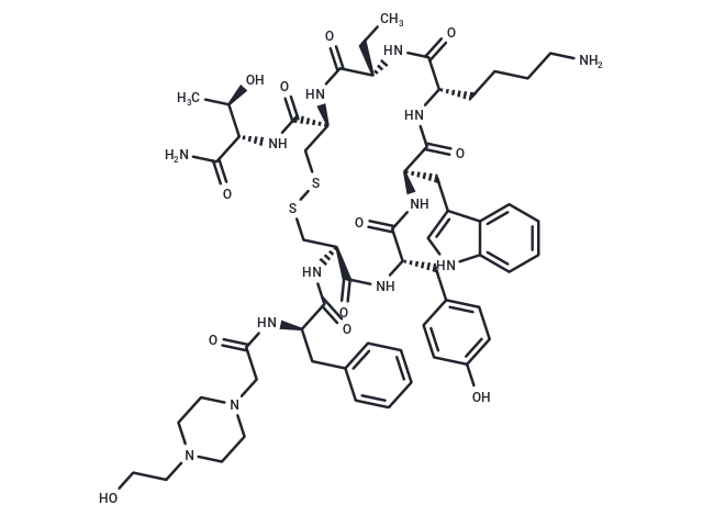 – CC[C@@H]1NC(=O)[C@H](CCCCN)NC(=O)[C@@H](Cc2c[nH]c3ccccc23)NC(=O)[C@H](Cc2ccc(O)cc2)NC(=O)[C@H](CSSC[C@H](NC1=O)C(=O)N[C@@H]([C@@H](C)O)C(N)=O)NC(=O)[C@@H](Cc1ccccc1)NC(=O)CN1CCN(CCO)CC1