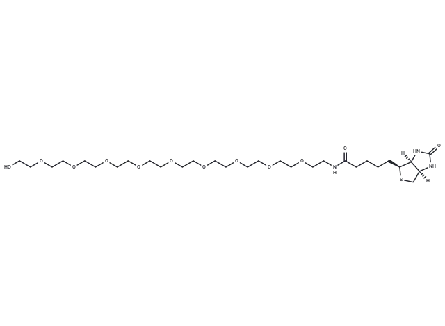 – (+)-Biotin-PEG10-OH is a PEG-based linker for PROTACs that joins two essential ligands, facilitating selective protein degradation via the ubiquitin-proteasome system in cells.