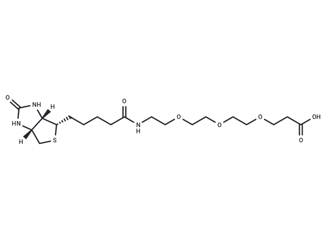 – Biotin-PEG3-acid is a biotin-labeled, PEG-based PROTAC linker that can be used in the synthesis of PROTACs. This heterobiofunctional biotin PEG derivative contains a carboxylic acid group. The hydrophilic PEG spacer arm imparts water solubility to the biotinylated molecule. [PEG Linkers] may be useful in the development of antibody-drug conjugates and drug delivery methods.