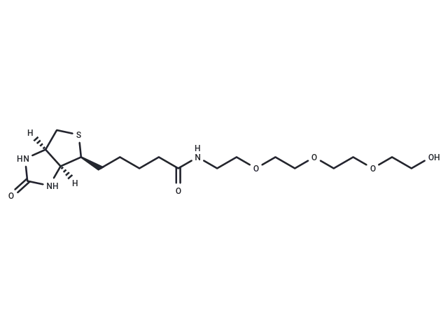 – Biotin-PEG4-OH, a PEG-based linker for PROTACs, joins two essential ligands crucial for forming PROTAC molecules, enabling selective protein degradation by leveraging the ubiquitin-proteasome system within cells.