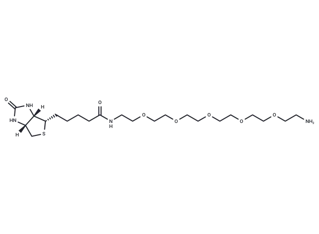 – Biotin-PEG5-amine is a PEG-based PROTAC linker labeled with biotin. It is utilized in the synthesis of PROTACs, a class of molecules with the ability to target and degrade specific proteins[1].