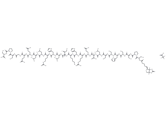 – OC[C@@H](C(N[C@H](C(N[C@@H](CC1=CN=CN1)C(N[C@H](C(N[C@H](C(N[C@H](C(N[C@]([H])(C(N[C@H](C(N[C@H](C(N[C@@H](CC2=CN=CN2)C(N[C@H](C(N[C@]([H])(C(N[C@H](C(N[C@@H](CC3=CN=CN3)C(N[C@H](C(N[C@H](C(N[C@H](C(N[C@H](C(N[C@H](C(NCC(N[C@H](C(N4CCC[C@H]4C(N[C@H](C(O)=O)CO)=O)=O)CO)=O)=O)CCC(O)=O)=O)CCC(N)=O)=O)CC(C)C)=O)CC(C)C)=O)CCCNC(N)=N)=O)=O)CC(C)C)=O)[C@@H](C)CC)=O)CCCCN)=O)=O)CCCNC(N)=N)=O)CCC(O)=O)=O)[C@H](O)C)=O)CC(C)C)=O)CO)=O)CO)=O)=O)CO)=O)NC([C@@H]5CCCN5C([C@H](CS)NC(CCCC[C@@H]6SC[C@@]7([H])[C@]6([H])NC(N7)=O)=O)=O)=O.OC(C(F)(F)F)=O