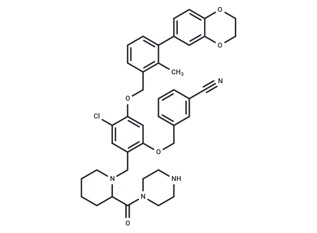 – Cc1c(COc2cc(OCc3cccc(c3)C#N)c(CN3CCCCC3C(=O)N3CCNCC3)cc2Cl)cccc1-c1ccc2OCCOc2c1
