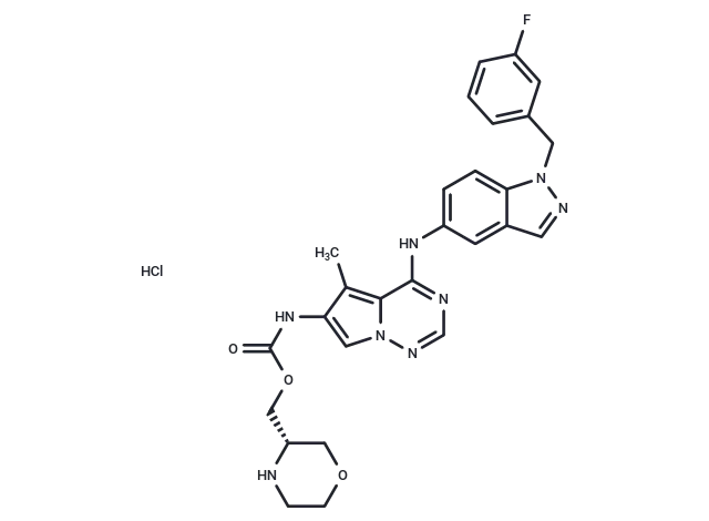 – Cl.Cc1c(NC(=O)OC[C@@H]2COCCN2)cn2ncnc(Nc3ccc4n(Cc5cccc(F)c5)ncc4c3)c12