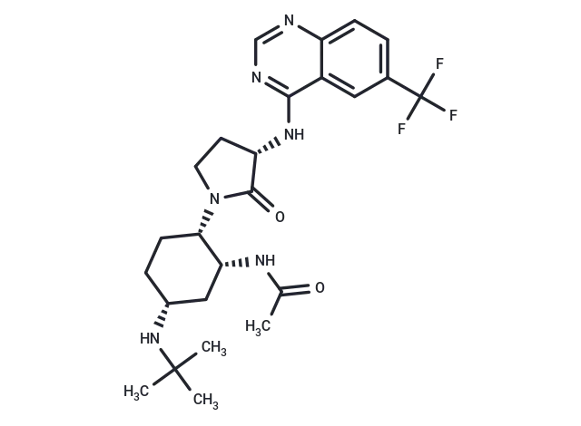 – CC(=O)N[C@@H]1C[C@@H](CC[C@@H]1N1CC[C@H](Nc2ncnc3ccc(cc23)C(F)(F)F)C1=O)NC(C)(C)C