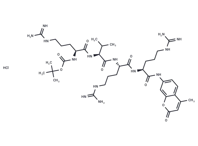– Cl.CC(C)[C@H](NC(=O)[C@H](CCCNC(N)=N)NC(=O)OC(C)(C)C)C(=O)N[C@@H](CCCNC(N)=N)C(=O)N[C@@H](CCCNC(N)=N)C(=O)Nc1ccc2c(C)cc(=O)oc2c1
