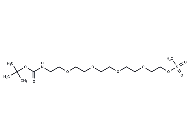 – Boc-N-Amido-PEG5-Ms is a PEG-based linker for PROTACs which joins two essential ligands, crucial for forming PROTAC molecules. This linker enables selective protein degradation by leveraging the ubiquitin-proteasome system within cells.