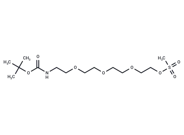 – Boc-NH-PEG4-Ms is a PEG-based linker for PROTACs which joins two essential ligands, crucial for forming PROTAC molecules. This linker enables selective protein degradation by leveraging the ubiquitin-proteasome system within cells.