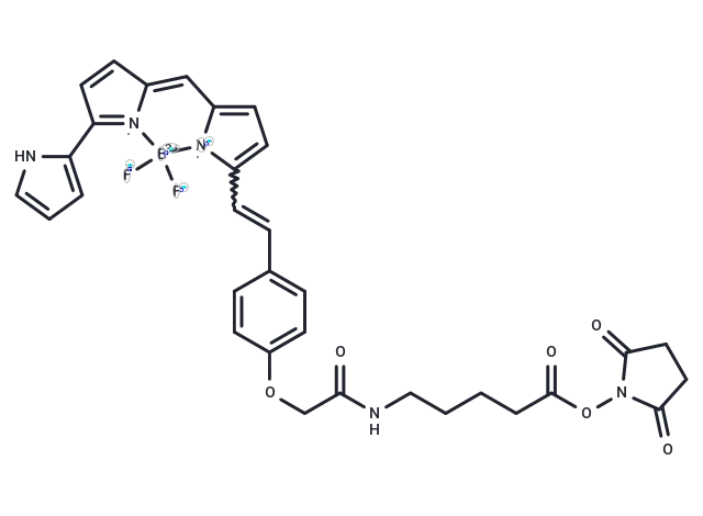 – [F-][B+3]1([F-])[N]=2C(=CC=3[N-]1C(C=CC4=CC=C(OCC(NCCCCC(ON5C(=O)CCC5=O)=O)=O)C=C4)=CC3)C=CC2C6=CC=CN6