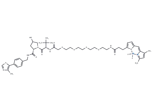 – O=C(N1[C@@H](CC(C1)O)C(NCC2=CC=C(C3=C(N=CS3)C)C=C2)=O)[C@H](C(C)(C)C)NC(COCCOCCOCCOCCNC(CCC4=CC=C(C=C5C(C)=C6)N4[B-](F)(F)[N+]5=C6C)=O)=O