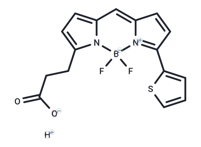 – O=C(CCC1=CC=C2C=C3C=CC(C4=CC=CS4)=[N+]3[B-](F)(N21)F)[O-].[H+]
