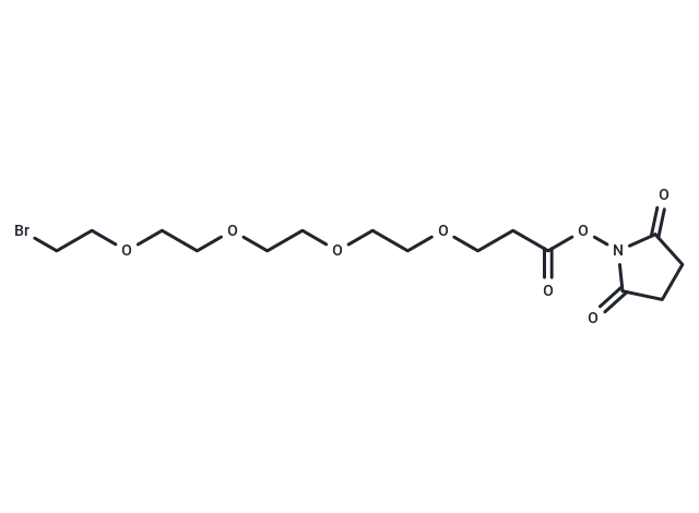 – Bromo-PEG4-NHS ester is a PEG-based linker for PROTACs, joining two essential ligands crucial for forming PROTAC molecules. This linker enables selective protein degradation by leveraging the ubiquitin-proteasome system within cells.