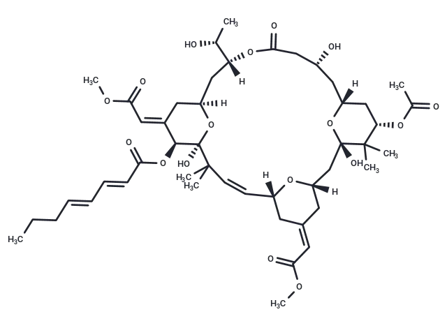 – Bryostatin 1 is a natural macrolide isolated from the bryozoan Bugula neritina and is a CNS-permeable PKC modulator. Bryostatin 1 binds to the isolated C1 domain of Munc13-1 and the full-length Munc13-1 protein [Kis: 8.07 nM and 0.45 nM].