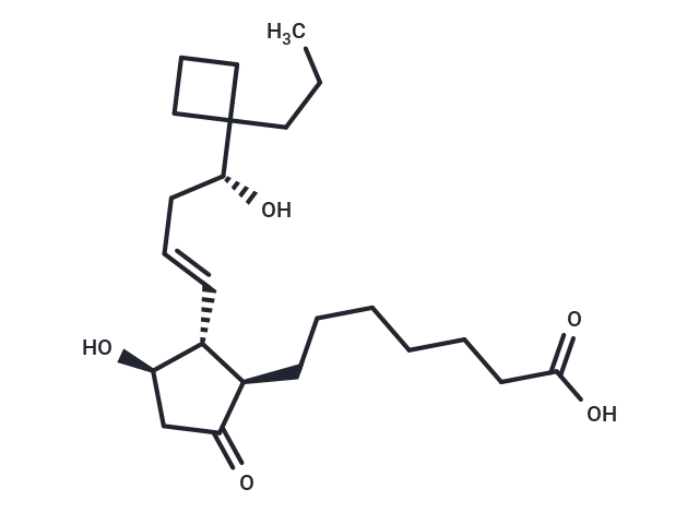 – (R)-Butaprost (free acid) is a prostaglandin E2 (PGE2) analog exhibiting high EP2 receptor subtype selectivity, commonly used to delineate EP receptor expression in human and animal tissues and cells. In 1986, Gardiner induced significant confusion regarding its structure by incorrectly identifying the selective C-16 epimer as (R)-butaprost (refer to the British Journal of Pharmacology, page 46, as TR 4979, and notes). By removing the methyl ester and restoring the native carboxylic acid at C-1, the binding affinity for prostaglandin receptors was enhanced, given such free acids typically display 10 to 100 times greater affinity than their ester counterparts. Although not extensively studied pharmacologically, (R)-butaprost is generally viewed as the less active C-16 epimer, with careful studies conducted later in the United States and Japan ultimately establishing the correct active structure as the 16(S) epimer.