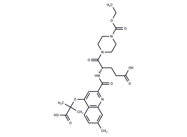 – O(C(C(O)=O)(C)C)C=1C2=C(N=C(C(N[C@H](C(=O)N3CCN(C(OCC)=O)CC3)CCC(O)=O)=O)C1)C=C(C)C=C2