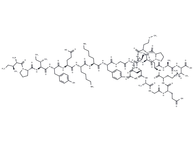 – CC[C@H](C)[C@H](N)C(=O)N1CCC[C@H]1C(=O)N[C@@H]([C@@H](C)CC)C(=O)N[C@@H](Cc1ccc(O)cc1)C(=O)N[C@@H](CCC(O)=O)C(=O)N[C@@H](CCCCN)C(=O)N[C@@H](CCCCN)C(=O)N[C@@H](Cc1ccc(O)cc1)C(=O)NCC(=O)N[C@@H](CCC(N)=O)C(=O)N[C@@H](C(C)C)C(=O)N1CCC[C@H]1C(=O)N[C@@H](CCSC)C(=O)N[C@H]1CSSC[C@H](NC(=O)[C@H](CCC(N)=O)NC(=O)[C@H](CCC(O)=O)NC(=O)CNC(=O)[C@H](C)NC(=O)[C@H](CC(O)=O)NC1=O)C(=O)N[C@@H](C)C(=O)N[C@@H](C(C)C)C(O)=O
