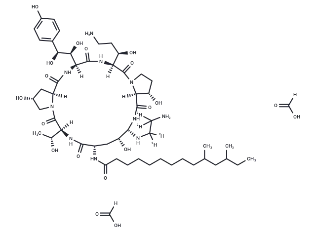 – O=C1N2[C@]([C@H](CC2)O)([H])C(N[C@@H]([C@@H](C[C@@H](C(N[C@@](C(N3[C@](C[C@H](C3)O)([H])C(N[C@@](C(N[C@@]1([H])[C@H](O)CCN)=O)([H])[C@H](O)[C@H](C4=CC=C(C=C4)O)O)=O)=O)([H])[C@H](O)C)=O)NC(CCCCCCCCC(C)CC(C)CC)=O)O)NC([2H])([2H])C([2H])([2H])N)=O.OC([H])=O.OC([H])=O