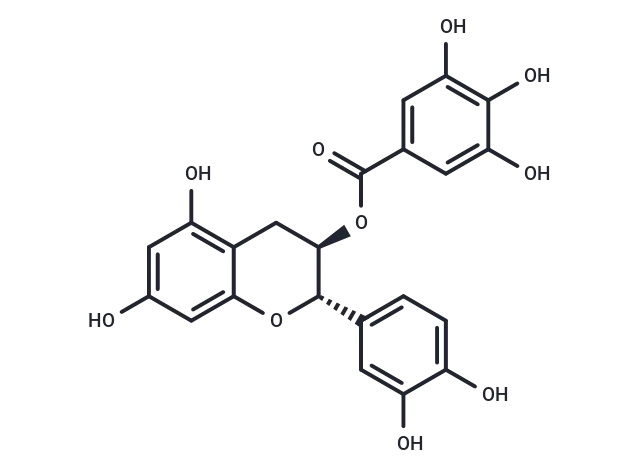 – (-)-Catechin gallate ((-)-Catechin 3-O-gallate) displays inhibition of 6PGD, IDH. (-)-Catechin gallate ((-)-Catechin 3-O-gallate) displays inhibition of human Beta-secretase. (-)-Catechin gallate ((-)-Catechin 3-O-gallate) possesses antiplasmodial activity against chloroquine-sensitive Plasmodium falciparum NF54 and chloroquine-resistant Plasmodium falciparum K1.