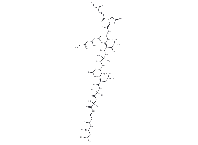 – CC[C@H](C)C=CC(=O)N1C[C@@H](C)C[C@H]1C(=O)N[C@@H](C[C@H](C)C[C@H](O)CC(=O)CC)C(=O)N[C@@H]([C@H](O)C(C)C)C(=O)NC(C)(C)C(=O)N[C@@H](CC(C)C)C(=O)N[C@@H](CC(C)C)C(=O)NC(C)(C)C(=O)NC(C)(C)C(=O)NCCC(=O)N[C@@H](C)CN(C)C