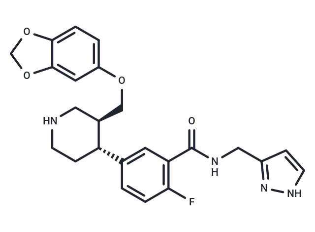 – C(OC=1C=C2C(=CC1)OCO2)[C@H]3[C@@H](CCNC3)C4=CC(C(NCC=5C=CNN5)=O)=C(F)C=C4