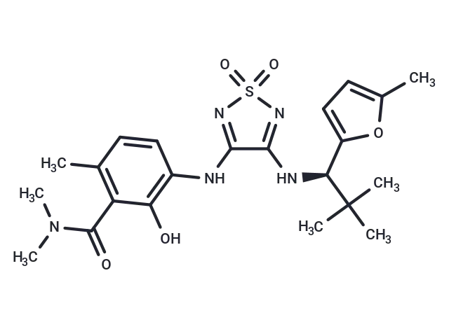 – CN(C)C(=O)c1c(C)ccc(NC2=NS(=O)(=O)N=C2N[C@@H](c2ccc(C)o2)C(C)(C)C)c1O