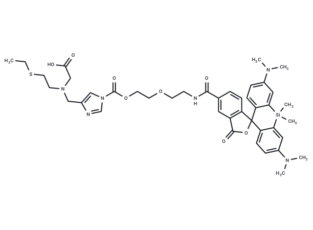 – O=C(OCCOCCNC(C1=CC2=C(C3(OC2=O)C4=CC=C(N(C)C)C=C4[Si](C)(C)C5=CC(N(C)C)=CC=C35)C=C1)=O)N6C=NC(CN(CCSCC)CC(O)=O)=C6