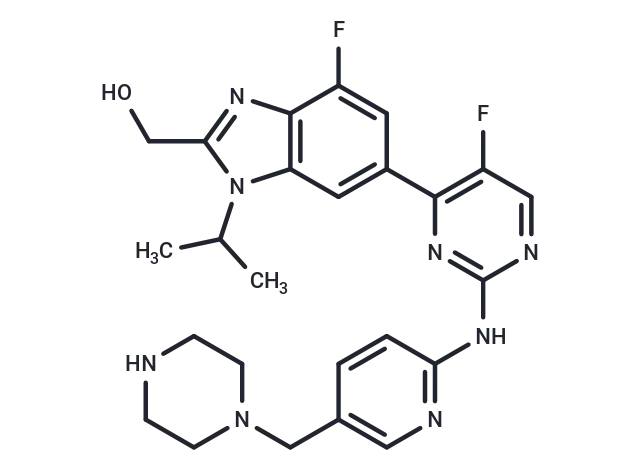 – FC(C=N1)=C(C2=CC(N(C(C)C)C(CO)=N3)=C3C(F)=C2)N=C1NC4=NC=C(C=C4)CN5CCNCC5