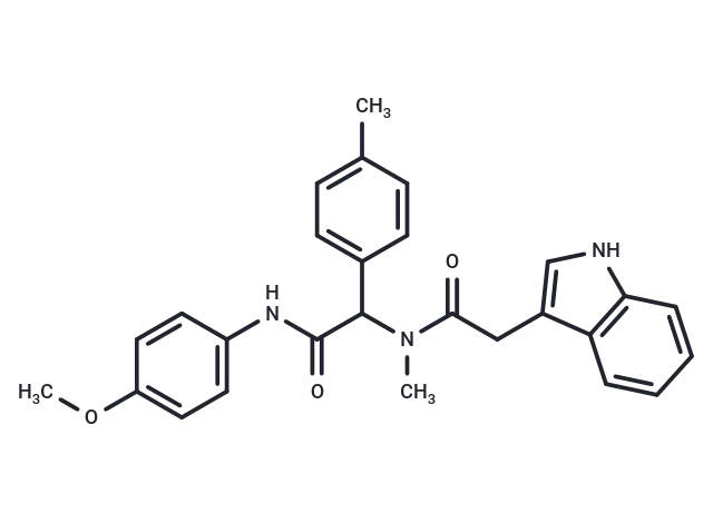 – O=C(NC1=CC=C(OC)C=C1)C(C2=CC=C(C=C2)C)N(C(=O)CC3=CNC=4C=CC=CC43)C