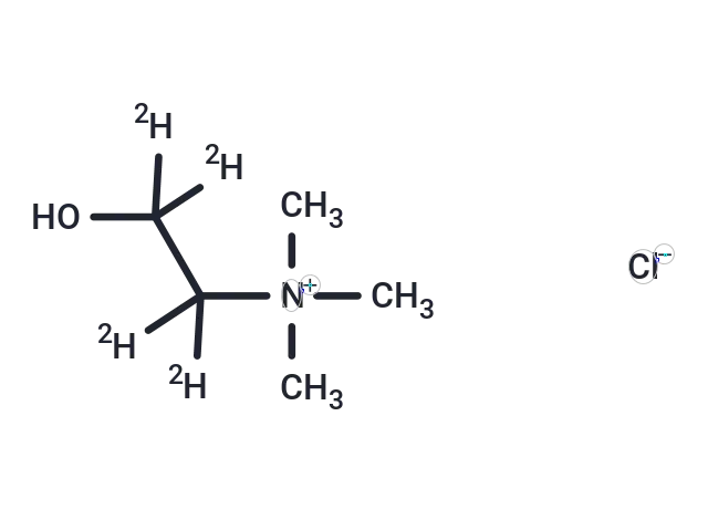 – Choline-d4 Chloride (Choline-1,1,2,2-D4 Chloride) is a deuterated form of Choline chloride, an essential nutrient activating α7 nicotinic receptors with anti-inflammatory and analgesic activity. It impacts atherosclerosis, neurological diseases, and liver diseases.