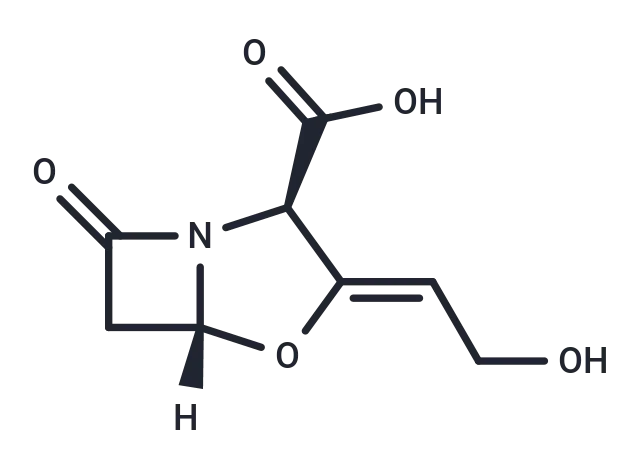 – Clavulanic Acid(RX-10100), a major beta-lactam antibiotic produced by the organism Streptomyces claveris, is a potent bacterial beta-lactamase inhibitor used in the study of infections caused by bacteria. Clavulanic Acid has a broad spectrum of biological activity and is active against a wide variety of Gram-positive and Gram-negative bacteria.