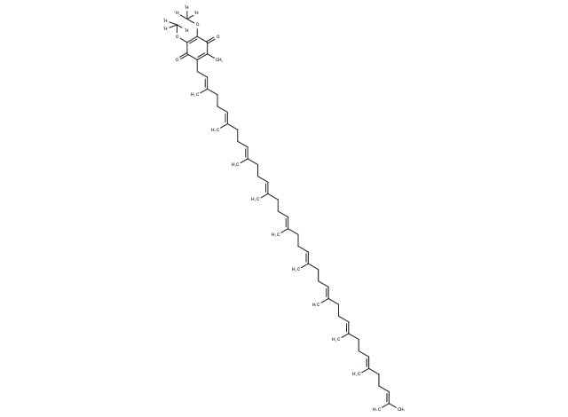 – Coenzyme Q10-d6 is a deuterated compound of Coenzyme Q10. Coenzyme Q10 has a CAS number of 303-98-0. Coenzyme Q10 (ubiquinone) is a naturally occurring compound, acting as the electron carrier in the mitochondrial respiratory chain.