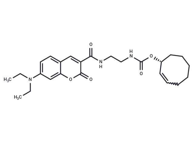 – Coumarin-C2-TCO is a dye derivative of Coumarin that can engage in an inverse electron demand Diels-Alder reaction (iEDDA) with molecules containing a Tetrazine group through its own TCO moiety.
