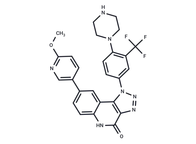 – O=C1C2=C(C=3C(N1)=CC=C(C3)C=4C=CC(OC)=NC4)N(N=N2)C5=CC(C(F)(F)F)=C(C=C5)N6CCNCC6