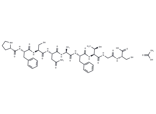 – O=C([C@@H]1CCCN1)N[C@H](C(N[C@@H](CS)C(N[C@@H](CC(N)=O)C(N[C@@H](C)C(N[C@H](C(N[C@@H]([C@H](O)C)C(NCC(N[C@@H](CS)C(O)=O)=O)=O)=O)CC2=CC=CC=C2)=O)=O)=O)=O)CC3=CC=CC=C3.CC(O)=O