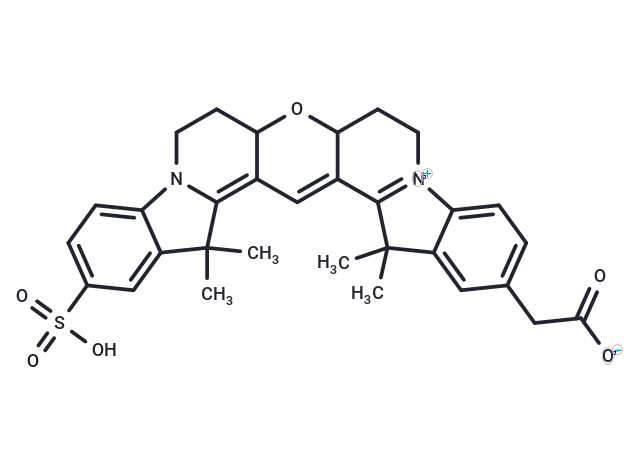 – CC1(C)C2=C3C(OC4C(=C3)C5=[N+](CC4)C=6C(C5(C)C)=CC(CC([O-])=O)=CC6)CCN2C=7C1=CC(S(=O)(=O)O)=CC7