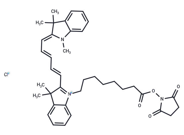 – [Cl-].CN1C(=C/C=C/C=C/C2=[N+](CCCCCCCC(=O)ON3C(=O)CCC3=O)c3ccccc3C2(C)C)C(C)(C)c2ccccc12